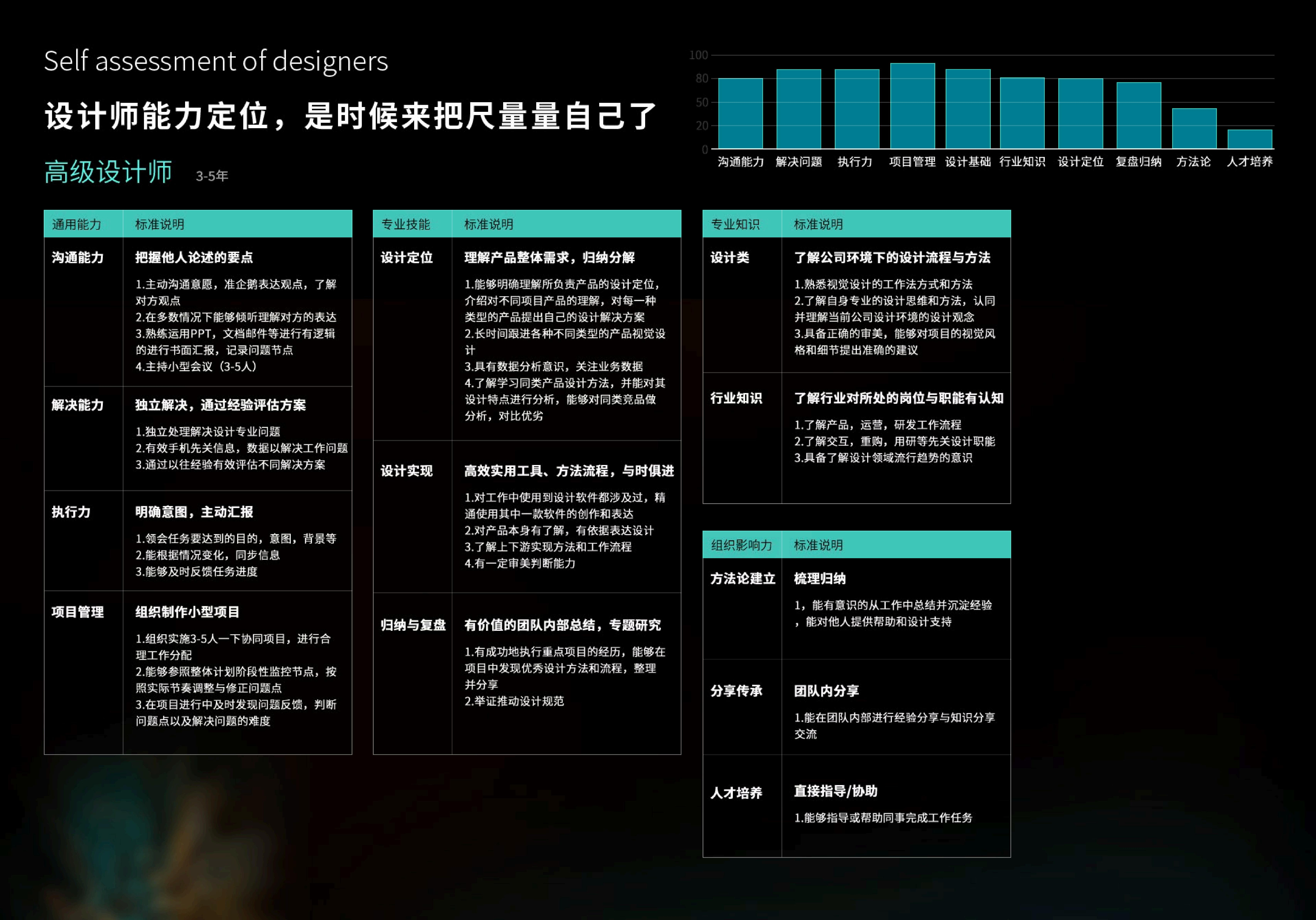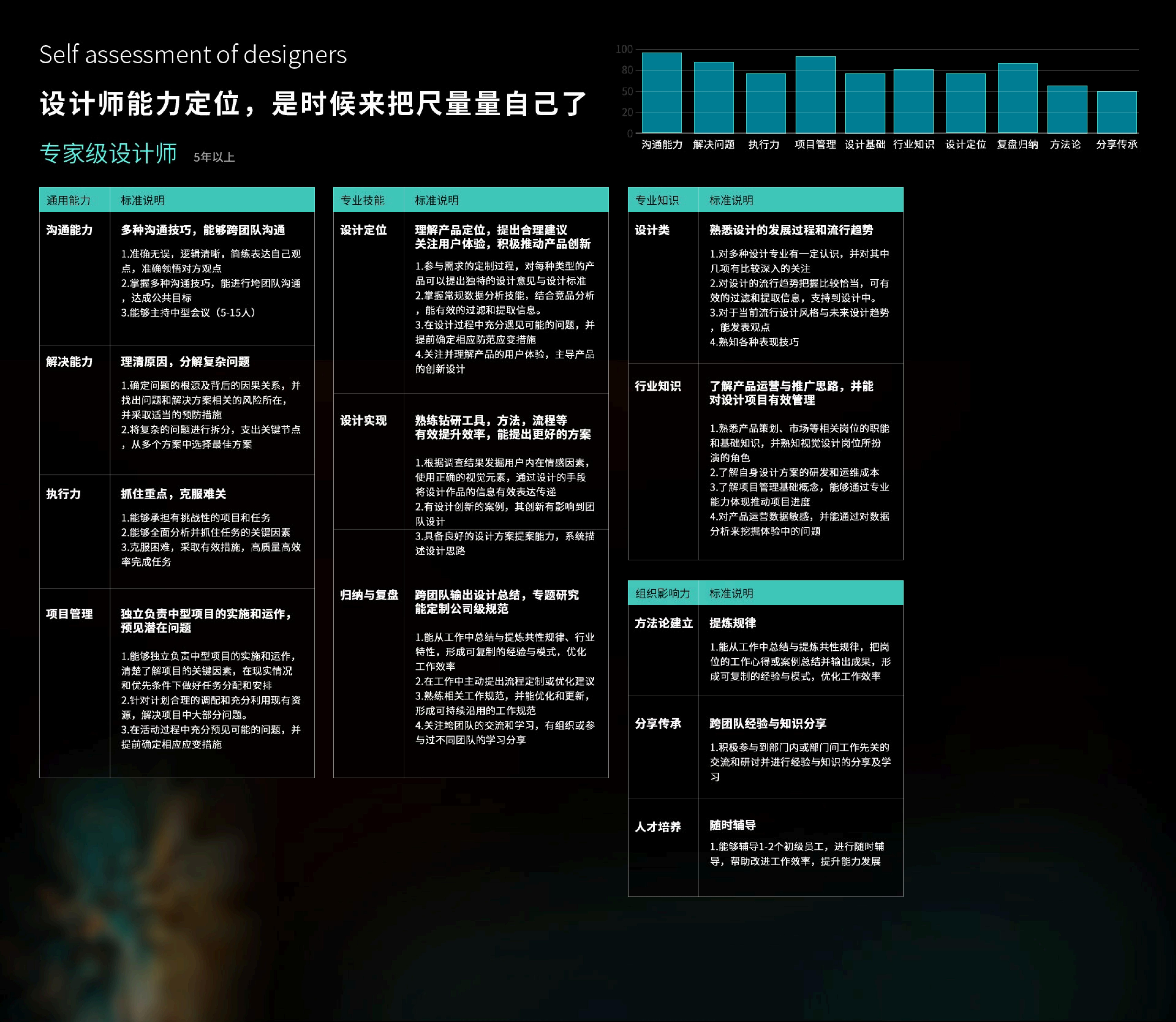 在团队管理过程中,我逐步建立了 设计师能力评估与成长体系,用于帮助团队成员明确成长方向,并提升团队整体设计能力。