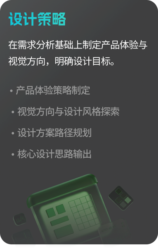 · 能够分析产品需求并梳理设计策略 · 具备产品视角和设计决策能力 · 能提出完整设计解决方案