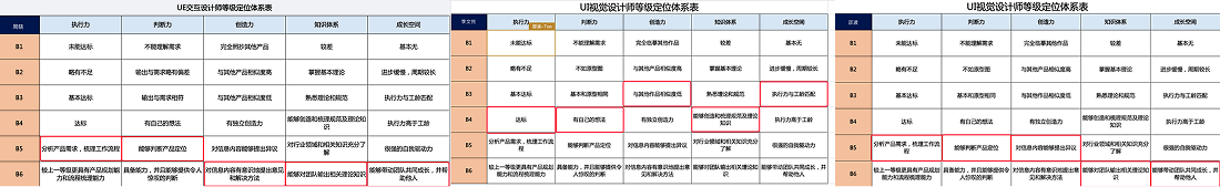 根据设计师能力发展阶段,将团队成员划分为多个等级,并从多个维度进行综合评估。
