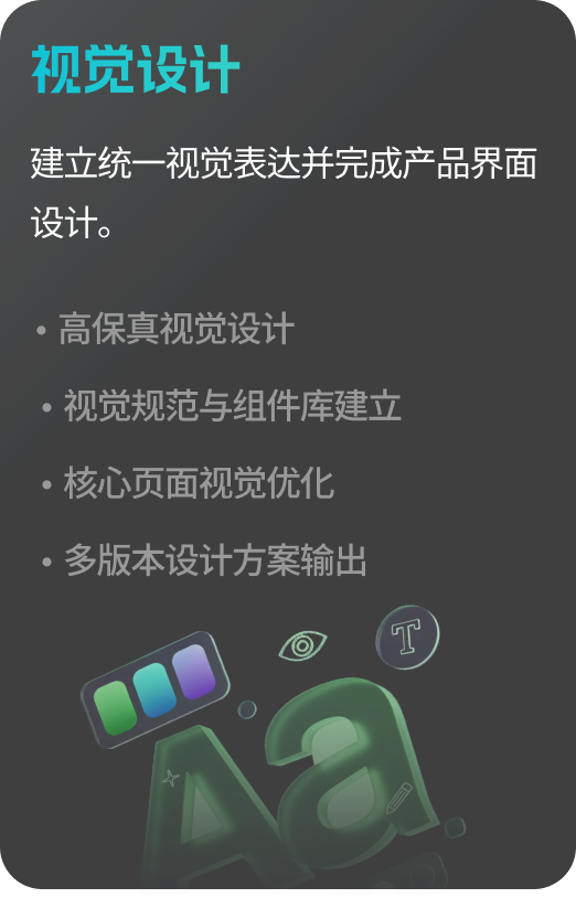 • 核心页面视觉设计质量 • 界面视觉统一性 • 品牌视觉规范执行情况