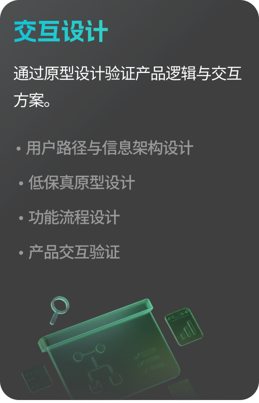 • 交互原型设计数量 • 交互方案合理性 • 用户流程设计质量